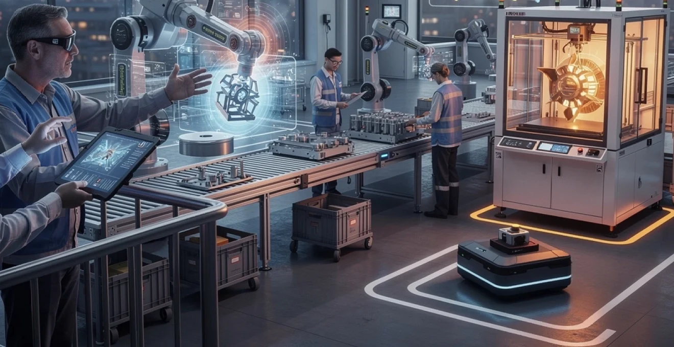 Au-delà de ces piliers technologiques, l’Industrie 4.0 s’appuie sur un ensemble de technologies habilitantes qui transforment physiquement l’usine. Robotique collaborative, fabrication additive, réalité augmentée ou blockchain contribuent chacune à redéfinir les méthodes de travail, les flux de production et les relations entre acteurs de la chaîne de valeur. Ces briques technologiques ne sont pas des fins en soi : elles prennent tout leur sens lorsqu’elles sont intégrées dans une stratégie globale de transformation industrielle alignée avec les objectifs business.